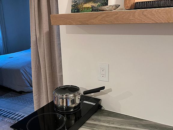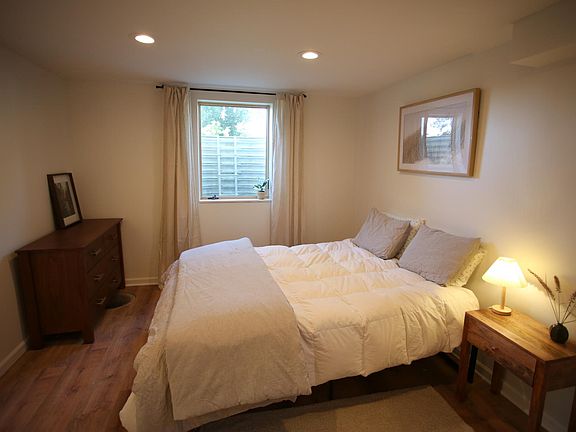FURNISHED lovely 1 bed, 1 bath lower-level/basement apartment in farmhouse with a big backyard. Very bright, windows are partially above-ground. Separate entrance with private living space, kitchenette, living room, and bathroom. Kitchenette includes small refrigerator, two burner cooktop, toaster oven, microwave, pots & pans, and dishes. Bedroom includes queen bed, & dresser. Family lives upstairs. Unit is on the smaller size so best suited for one person. No pets. Space in shared garage for storage or car. All utilities (electric, water, trash, etc.) and WiFi $100 monthly flat fee. Flexible lease length, would prefer 6+ months.