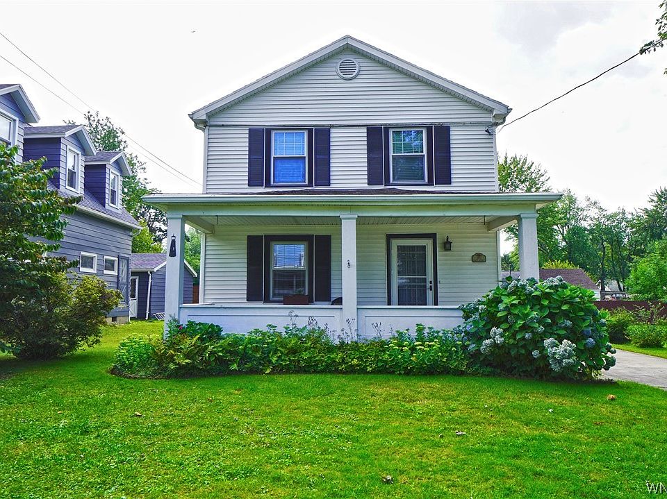 LOCATION!! Grandview Bay area directly across the street from the Beautiful Lake Erie!! Minutes walk to Evans Town Park, the beach clubs & your very own deeded private beach access. Large 2 story with a bit over 1900sqft, a lovely front porch for sitting & admiring the views of the sunset & water! 4 bed rooms, 1 full & 1/2 bath. Open dining/living area with gas fireplace, eat in kitchen (with all appliances included "as is"), 4 season enclosed back porch, partial basement with walkout & a 2 car detached garage. Rare find so close to the water & amenities of summer living in the Town of Evans! Sellers request any offers be in by 8/22/23 by 12pm.