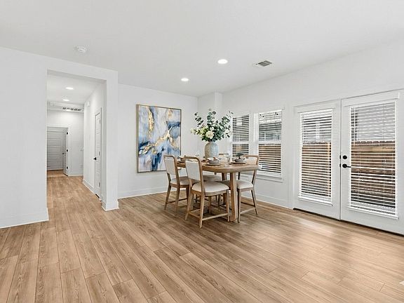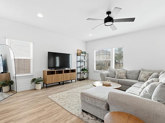 Welcome to this beautifully maintained 3-bedroom, 2.5-bath home located in the highly desirable Easton Park community. Designed with both comfort and functionality in mind, this home features an open-concept floor plan that seamlessly connects the living, dining, and kitchen areas, perfect for everyday living and entertaining. The expansive living room provides ample space for gatherings and is enhanced by luxury vinyl flooring that runs throughout the home. Thoughtfully selected designer tile accents add a modern, elevated touch to the interior finishes. A stunning foyer welcomes you upon entry and sets the tone for the home’s clean, contemporary design. The wrap-around patio extends the living space outdoors, offering an ideal setting for relaxing or hosting guests. The garage is equipped with an electric vehicle charging connector, adding convenience and future forward functionality. One of the standout features of this property is its convenient location within the subdivision, offering easy access in and out, ideal for commuters, quick trips to nearby shopping, dining, and daily essentials. This move-in-ready home combines style, comfort, and convenience in one of Austin’s most sought after communities.