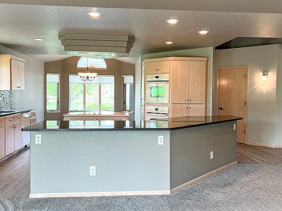 Welcome to this beautifully updated country property, a true oasis nestled in the heart of nature. No steps! This stunning patio home is situated on nearly 2 acres of sprawling land and offers a fresh and updated aesthetic. Step inside and be greeted by the warm, inviting atmosphere with beautiful entry double doors and a large foyer with a closet and bench. The spacious open-concept layout boasts 2,068 sqft of living space, allowing for seamless interaction and comfortable living inside and out. The gourmet-style kitchen has ample Klemetson cabinetry, pull-out drawers, quartz countertops, a double sink (with instant hot water), beautiful backsplash, luxurious vinyl plank, recessed lighting, and an oversized eat-in island. Enjoy the cooking with the double oven and cooktop center island! Adjacent is a bright, formal dining area next to bay windows with vaulted ceilings. The living room is spacious, with outlets on the floor for your convenience. Relax next to the fireplace or take advantage of a peaceful and serene environment from the walk-out deck (with a hot tub hookup) that wraps around the back of the home. This section of the house is perfect for entertaining guests! Nearby is Bedroom #1, a luxurious primary suite surrounded by nature views, walk-out deck doors, tray ceilings with lighting, and a cozy fireplace. The ensuite bathroom boasts a huge walk-in ceramic tile shower with double shower heads and a seating area. Bedroom #2, Bathroom #2, and Bedroom #3 are down the hall. The laundry room has a sink, counter space, upper and lower cabinetry, with access to the attached 3-stall garage. (Insulated and heated). Outside the back door is a small building for more storage. Sprinkler system outside with professional landscaping. You can have a big backyard for gardening, set up recreational areas, engage in various outdoor hobbies, or be free to build or expand your property. The homeowners invested much time and UPDATES into every detail throughout this property. This desirable location alone is a must-see! If you value privacy, tranquility, and a slower-paced lifestyle, this country property can be an ideal choice for your next home. Book your tour with a Realtor today.