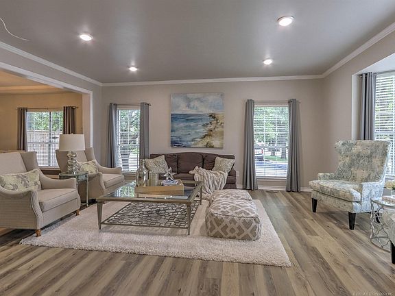 Gorgeous Patio Style Home! Beautiful floor updated w/ LVP (Luxury Vinyl Plank). New deck, professionally landscaped. NEW HVAC UNIT. Central Vac - washer/dryer/fridge all stay. 2 living, formal dining. Jenks Schools. Fabulous location.