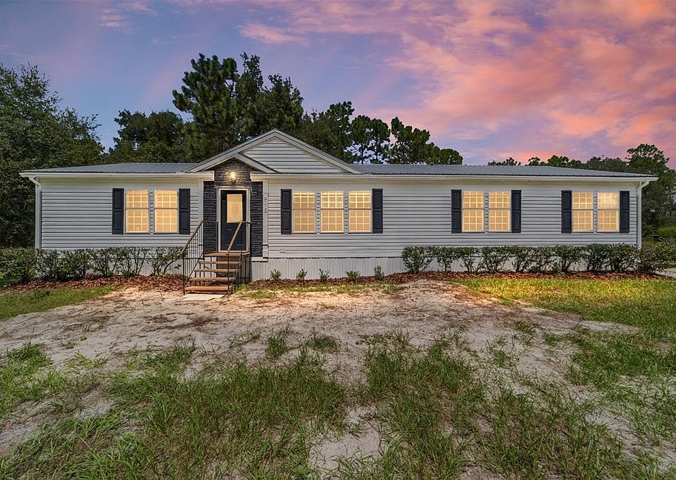 Enjoy country living in this freshly updated 3-bed, 2-bath 2007 manufactured home on 1.25 acres of agricultural land. Renovated in September 2024, it features new luxury vinyl plank flooring, granite countertops, and fresh interior paint throughout. The kitchen includes an island and brand-new stainless steel appliances: dishwasher, fridge, microwave, and range. The home also offers a convenient laundry room with a granite vanity sink. Outside, you'll find a partially fenced yard with a chain-link fence, a spacious shed, and a detached garage/workshop equipped with electricity and a concrete floor. The metal roof and HVAC were replaced in 2019, ensuring comfort and durability. Situated on a private dirt road, this property offers a peaceful setting while still providing modern amenities.