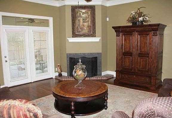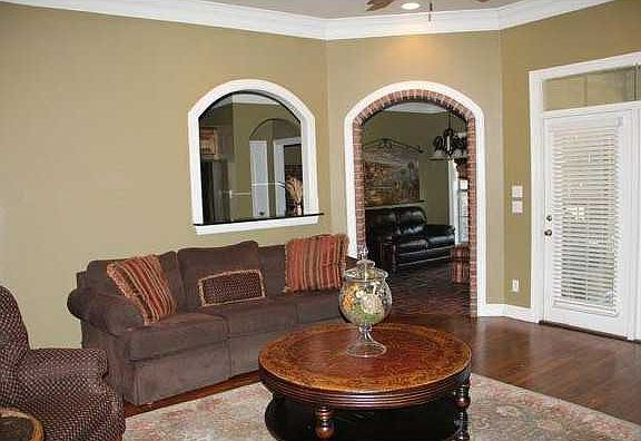 This gorgeous 4 bedroom, 2 bath home in Twelve Oaks has 2100 square feet and too many features to list. Lovely archways and crown molding highlight the high ceilings and designer paint colors. Unique brick flooring throughout some of the living areas, with wood in living, dining, and entry. Carpet in bedrooms. Large covered patio in back with brick patio extending out into backyard.