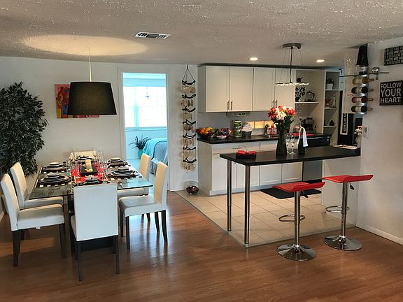 Turn key investment property, 2nd home, or homestead. Beautifully update+ decorated 3 bed/ 2 bath home w/pool and 1 car garage. Currently operated as a successful short-term vacation home. The entire house was updated in 2014 including the roof and windows. A/c 2015 and pool heater 2017. The exterior feels like your own private tropical oasis. The 3rd Bdrm has an indoor sauna and access to the covered patio which leads to the screened deck. Swim year round in the heated pool. The backyard has a grill, picnic table, & paved patio area to relax under the Tiki Hut. There is a one car garage w/ washer & dryer and plenty of parking in the driveway. Minutes from Werner-Boyce waterfront State Park (4 miles of coastline along the Gulf of Mexico) and Gulf View Square Mall. Walking distance to a plaza with shopping, food, & entertainment. Flood insurance is NOT required. Income/Expense info is available upon request. DO NOT VISIT THE PROPERTY WITHOUT AN APPT. Currently leased until April with a few dates to view in between vacationers. The owner has two more similar homes for sale which are also leased short term. Don't miss this Gorgeous home.