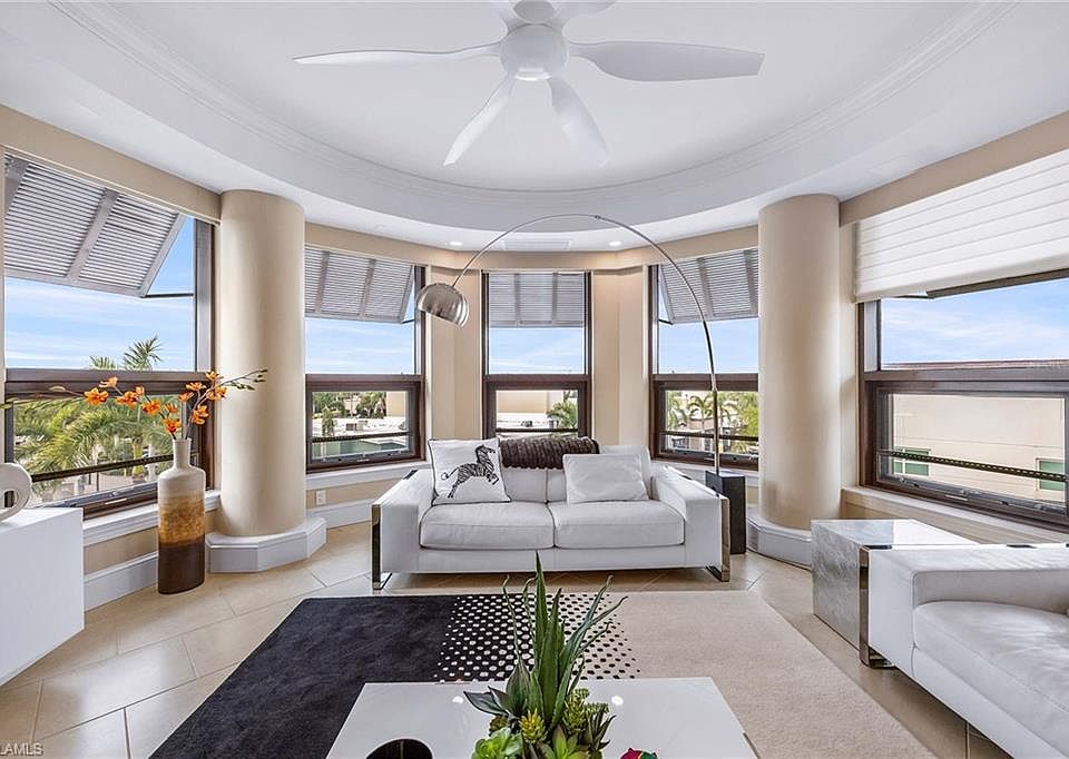 Experience the ultimate in effortless luxury living from this stunning three-bedroom, three-bath residence perfectly positioned on the fourth floor, capturing breathtaking sunset views. Thoughtfully designed for comfort and privacy, each bedroom features its own en-suite bath, ideal for hosting guests or enjoying your serene retreat. An expansive open great room filled with natural light through walls of impact windows creates a welcoming space for relaxing or entertaining. The kitchen, appointed with rich wood cabinetry, a generous breakfast bar island and ample counter space, is the heart of the home, ideal for casual mornings or lively evenings with friends. Go outside and embrace the vibrant Mercato lifestyle, where boutique shopping, world-class dining, Whole Foods and a luxury cinema are all just near your door. Unwind atop the private rooftop amenities deck, complete with a 52-foot resort-style pool, spa, fitness center, clubhouse and dog park, an urban oasis designed for relaxation and connection. With two covered parking spaces in the owner’s gated garage, convenient same-level storage and Vanderbilt Beach only 1.5 miles away, this residence blends cosmopolitan energy with coastal ease. A rare opportunity to live where luxury, convenience and lifestyle converge.