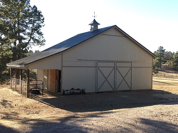 Privacy, Pines, Peace and Mountain Views! Lovely updated, ranch style home with 3,868 sq. ft. featuring 5 bedrms, a main floor study with custom glass doors, 3 bathrms, a finished walk-out basement w/wet bar, an oversized 2-car heated garage, a 24' x 36' outbuilding w/RV door, a separate 46 x 24 custom-built 3-Stall Barn, all on 7 fenced acres!