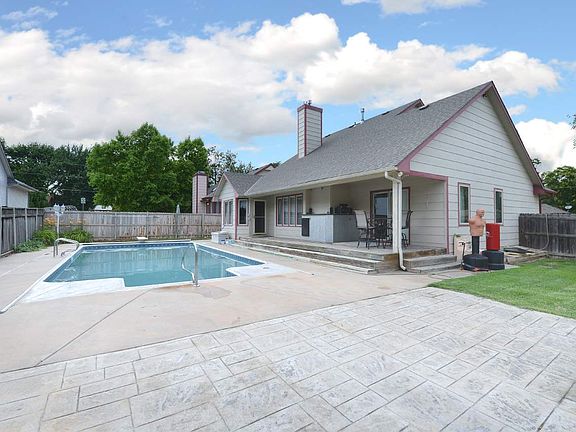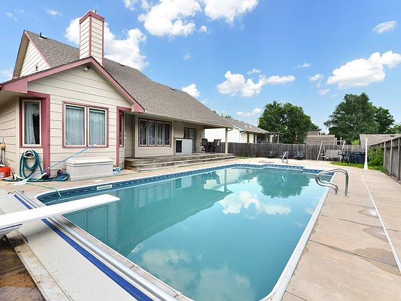 Back on the Market. 5 bedroom, 3.5 bath, in NW Wichita just a couple minutes from Rolling Hills Country Club. On the main level the living room has new wood flooring, a 2 way gas fireplace from the living room to the kitchen, main floor master bedroom with a master bath with a double sink and a main floor laundry with an additional half bath. The upstairs features 2 bedrooms and a full bath. The finished basement has 2 more bedrooms, a full bath, an additional fireplace and extra storage. The heated in ground swimming pool will keep your family entertained for years to come. The pool also has a new liner and cover. The backyard also features a patio and cover deck. This home comes with all the Kitchen appliances and the Clothes washer and dryer. This home is close to entertainment and shopping on the west side of Wichita. Schedule your private showing today. Property will be sold AS IN CONDITION.