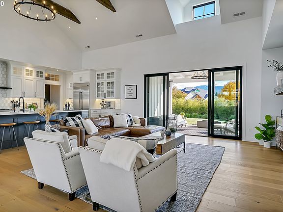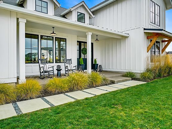 Stunning Urban Farmhouse! A rare opportunity to purchase a dC design and dC Eugene built home located in the quaint city of Coburg. Perfection from its white board-n-batt exterior to its open concept living with reclaimed timber beams, specialty lighting, barn doors, wide plank wood floors, shiplap, high end appliances, quartz counters, vaulted flex room, large sliders connecting to a timber framed covered patio, cedar wood hot tub & small sideyard vineyard. This home has it all!