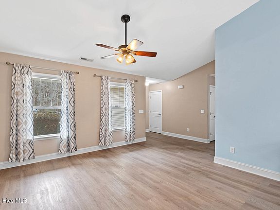 Welcome to this charming 3-bedroom, 2-bathroom home in the desirable neighborhood of Leland, NC. This inviting property features a spacious, open floor plan with vaulted ceilings, creating an airy and light-filled atmosphere throughout. The updated kitchen offers modern appliances, sleek countertops, and ample cabinet space for all your cooking needs. Step outside to the large backyard, perfect for entertaining or simply enjoying the outdoors in privacy. Located just across the street, you'll have easy access to a scenic nature trail, ideal for walking, biking, or connecting with nature. This home offers a wonderful blend of comfort, style, and convenience. Don't miss the chance to make it yours!