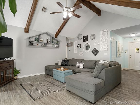 A true Bixby beauty with a large backyard perfect for relaxing and entertaining! This 3 bed 2 bath offers more than meets the eye. Recent updates include LVP flooring, tiled kitchen backsplash, storm door, a beautiful deck and bathrooms. Additional replacements and updates in the last 5 years: HVAC/furnace including the copper lines, all ductwork, ceiling fans, light fixtures and the kitchen was remodeled. The water heater, mailbox and privacy fence plus gates were installed in 2021. The backyard shed and garage have excellent workspace and add a ton of additional storage options. This house has been well maintained and is not to be missed! Agent related to seller.