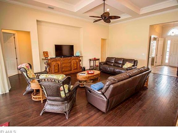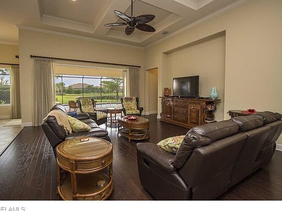 Now available, a rarely used 2012 Dartmouth model home with 2547 sq. ft. of resort style living. Southern exposure for this beautiful home is the ultimate exposure in SW Florida. Gorgeous pool and spa area overlooking a small lake. Offering 3 bedrooms plus a den(currently used as 4th bedroom) features upgraded appliances, flooring, impact resistant glass and a 3 car garage.