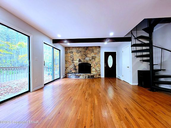 Renovated and so UNIQUE house backing up to STATE GAME LAND. Perfect for investment or Pocono's getaway. Spend summer nights at tis HUGE PRIVATE DECK grilling with friends or cozy up by this ORIGINAL STONE FLOOR TO CEILING FIREPLACE after day of skiing. This perfect house is located in Amenities filled community: Lakes, Pools, Tennis courts and so many different activities. Close to Rt 80, shopping, Mt. Airy Casino, minutes away from water parks: Kalahari Resort, Camelbeach, Aquatopia, Camelback Skiing resort, state parks, water sports, hiking, fishing, and more. Check with Coolbaugh Township regarding STR requirements.