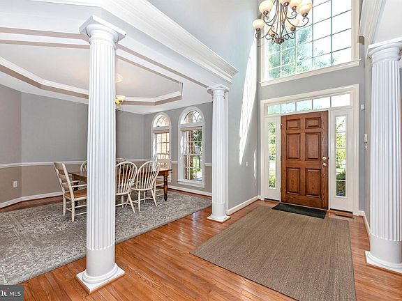 Welcome home to this brick-front NV Winterhall home on a corner lot that backs to trees. The two-story hardwood foyer greets you with a waterfall stairway in front of you. The living room and dining room have lots of upgrades including columns, triple crown molding, chair railing and tray ceiling. The main floor office is spacious with lots of built-ins with a powder room off of it. You'll be wowed by the 2-story family room with a full wall of gorgeous Palladium windows, gas fireplace and built-ins leading to the back staircase, spacious gourmet kitchen with huge octagon island, backsplash, granite countertops, walk-in pantry, gas cooktop and double ovens. This home is bumped out with a huge morning room/sunroom that leads to a maintenance-free deck with stairs leading to a fully fenced level back yard. Upstairs you'll find a master suite to die for! The master bedroom is huge with a sitting area, columns, tray ceiling, two walk-in closets, ceiling fan and a luxury bath with double vanities, tile shower, a huge soaking tub, and water closet. The secondary bedrooms are spacious and one has an ensuite with full bath and updated shower. The hall bath has double sinks, tile floor and tub/shower combo. When you enter the lower level via the waterfall staircase, you'll find a wetbar for entertaining your friends, a huge recreation room (currently used as a weight room) and a bedroom and full bath for your overnight guests, teenager or in-laws. This lower level leads out to a brick patio with bench. This location is a commuter's dream and is close to restaurants, grocery stores, liquor stores, cleaners, etc. Enjoy the 3 community pools, the jogging paths, and all the other amenities that the Villages of Urbana has to offer. This one will go quick so you'd better see it soon!