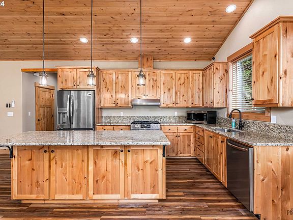 Amazing, quality home constructed in 2022 on over 12 acres. Very open with great southern exposure and amazing mountain views. The property boasts a new metal shop (24 x 26) on a concrete slab, RV hookups, wood storage shed, and tool shed (10 x 12), whole house propane generator. The interior has an amazing open floor plan with a stunning wood burning fireplace. Luxury vinyl flooring, tasteful wood finishes throughout make a for a very warm feeling. Across the highway from McKenzie River, close to a golf course, stores and multiple restaurants.