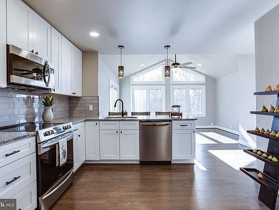 amazing renovation w/out a single detail spared! New open floor plan w/ tons of natural light throughout! Beautiful stained white oak flooring on main! New kitchen w/ stainless steel appliance package, oversized under-mount sink, new easy close shaker cabinets, new pendant lighting, custom glass subway tiled backsplash & silver pearl granite! New cathedral ceiling great room!