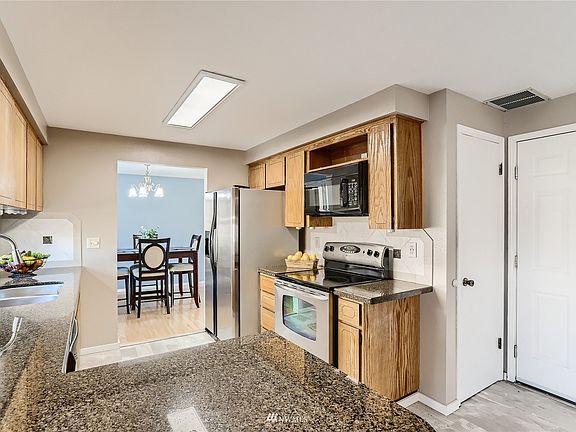 Rambler! One level living at its finest. Perfect combination of charm and function, this updated Everett home boasts easy & carefree living. Freshly painted throughout, LVP & hardwood flooring. Ample size kitchen with granite counters, SS appliances & pantry adjoining the cozy family room with fireplace. Spacious primary BDRM with attached updated BTH & Two additional BDRMS with newer guest full BTH. For the hot summer nights enjoy the heat pump & A/C! Entertain in the well maintained fully fenced private back yard with Trex deck, dog run, fruit trees and great space to garden. Plus, 2 car garage and room to park your RV or boat. No HOA! Centrally located in convenient S. Everett location!
