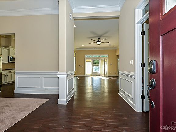 You'll LOVE spending quiet evenings in your GORGEOUS backyard! This 4 Bed/3 Bath Ranch home features a Gourmet Kitchen w/granite, custom roll-outs, gas cooktop, double ovens, SS appliances, tile backsplash, microwave & walk-in pantry. Separate Eat-in Breakfast area, Formal Dining Rm with Wainscoting & Study. Interior features include open floorplan with gas vented FP, 10' ceilings with double crown molding & neutral paint. Prefinished WOOD floors thru-out the home. BRAND NEW SMART HVAC system and comfort height toilets in all bathrooms. Side load Garage with TONS of extra storage space & heavy duty overhead and wall shelving. SS Refrigerator, W/D & gym equipment convey with home. Community amenities include 2 pools, clubhouse, pickleball, bocce, dog park, lake access, fitness center, boat ramp, tennis courts, playground and more! Located just minutes from Major Interstates, Uptown Charlotte, US Nat’l Whitewater Ctr, CLT Douglas Airport & Charlotte Premium Outlets.