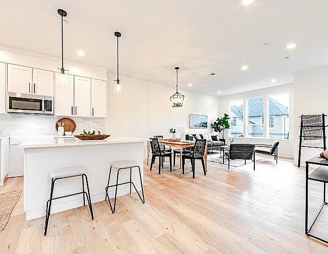 Modern matte black fixturesComfortable amenitiesWell-equipped kitchenWhite oak floorsWhite quartz countertops