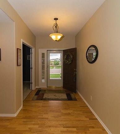 Welcome home to this bright & open rancher nestled on a .22 acre lot in desirable Woodmen Hills. Enjoy the community amenities including, Antler Creek Golf course, walking distance to Recreation Center & Balcon Park. Warm hardwood floors greet you at the entry and flow throughout the great room & kitchen. Covered entry opens to great room boasting a wall of windows letting the natural light pour in illuminating the open airy space welcoming you in, and invites you to stay.The adjoining eat-in kitchen has stylish 42â