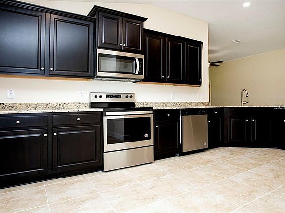 • Interior Features: High Ceiling(s), Open Floorplan, Walk-In Closet(s), Solid Wood Cabinets, Solid Surface Counters, In Wall Pest System
