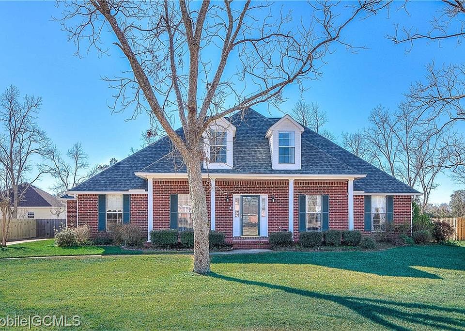 Large 5 bedroom and 3 full bath home in Daphne on close to 1 acre lot. This home has a ton of potential. Home has welcoming entry with high ceilings, crown molding and wood floors that carry into the formal dining room. Formal dining room has high ceilings, crown molding, and chair rail molding, it is adjacent to the breakfast room and kitchen. Kitchen and breakfast have split brick floors, solid surface counters, custom cabinetry, loads of counter space with breakfast bar and updated appliances. Living room is located right off the kitchen, with high ceilings, recessed lighting, ceiling fan, gas log fireplace and wall of windows looking into the huge sunroom. 28x24 Sunroom is located off the rear of the home and is accessible from attached 2 car garage, living room and owners suite. Sunroom has its own heating and cooling unit. Owners suite has large bedroom with en suite that has 2 closets, double vanity, generous sized shower with bench, new and barely used walk-in therapy tub. 3 additional very nice sized bedrooms and additional main floor bath complete the downstairs. Up stairs has 3rd bathroom and additional bonus space with massive amounts of storage closets and attic space. Second floor has its own HVAC unit. Home sits on .83 of an acre and has parking pad behind fence for RV, boat, trailer, additional car, basketball hoop, whatever you need. Parking pad is connected to covered porch attached to 24x16 workshop. Workshop has built in cabinets, window ac unit, and plenty of overhead workspace lighting. Property has irrigation system attached to well. Well is not water source for home. Backyard is fenced on 3 sides, rear fence was damaged during hurricane Sally and has not been replaced. If you need space and desire a great location, this should be your next home. Call today for more information.