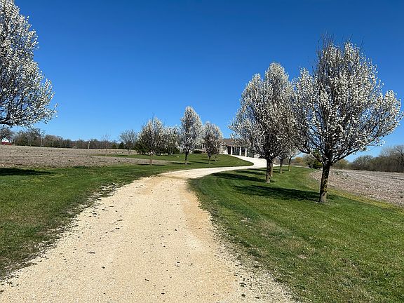 Stunning custom home on 21.42 Acres. Built with quality materials and amenities. Home sits on 11.21 Acres, there are two additional build-able parcels (5.57 Acres and 4.64 Acres) with E-5 zoning. There are 17 tillable acres, the farm is in corn and will be harvested by farm tenant in the fall. Every building and design choice was upgraded--no builder grade products here. Hardy Siding on exterior, screened-in back porch with tempered glass and summer screens. Home has 2'x'6' walls, 9' ceilings on main level and in walk-out basement. Two wood burning fireplace/stove, main level has the heatilator circulating system. Floors are Birdseye Maple, main BR has carpet, two full baths have Marble tile. The kitchen, bathrooms and laundry rooms all have Knotty Alder Cabinets. And, the interior doors and trim are Knotty Alder as well. In the main suite, there is a huge Jacuzzi air tub and the walk in shower has a steam bath feature. Main level has two bedrooms and an office/3rd bedroom. The basement has a walk-out entrance door, currently has a wood burning stove but is framed for a formal in-wall fireplace feature. The 3 car attached garage has oversized doors for larger trucks/vehicles, doors are 8'x18' and 8'x9'. The house sits up high and the sump pump never runs. The Zenz buillt custom machine shop is 48'x80' and has an overhead 16'x14' electric insulated door. There is also a sliding barn door on East end of building 20'x14 for easy access to large machinery. Approximately 1/3 of machine shop has concrete for the working area. There is an overhead lift system as well. Property has a 400 amp service, 200 amp service runs machine shop. The views overlooking the farm are panaramic! This is a great opportunity to live where you work and love where you live!