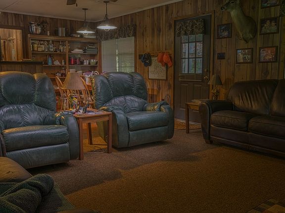 Hunter's retreat! This camp nestled on 3 +/- acres comes fully furnished and can sleep 18! Private drive lined with beautiful towering crepe myrtles. 2200 square foot enclosed shed with multiple bays, perfect for all your hobbies. Call Miriam today to view this peaceful paradise.
