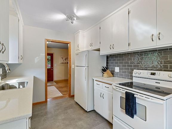 Charming 1-story home with updates throughout and situated on a fantastic lot with an amazing location. As you enter the home through the living room you’ll find the original hardwood floors, a large living room with oversized picture window overlooking the front yard. Kitchen was recently updated with quartz countertops, tile and beautiful tile backsplash. Newer roof, siding, furnace, A/C and windows. Expansive finished lower level with new plush carpet and stunning new bath in 2021 with subway tile shower surround, modern vanity and nice neutral colors. Huge and bright laundry + storage room. Close to parks, shopping, dining and more!
