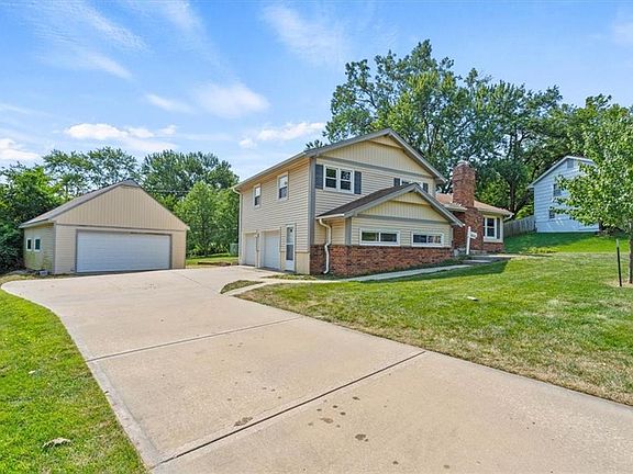 Sitting on an over half-acre lot, this 3 bedroom 2 1/2 Bel Air Heights split level has an attached 2 car garage and detached 4 car garage with solar panels that power the home. The main level includes a living room with fireplace, dining room and kitchen with plenty of pantry and cabinet space. Three bedrooms and 2 full baths including a primary suite on the second level. Lower level family room off the garage. Full dry basement with plenty of storage. Newer furnace. Updated windows and storm doors with warranty. Monthly electric bill averages $10. Home is being sold As-is. Walkable to Meadowbrook Park, minutes to shops at 95th & Nall and Metcalf. BACK ON THE MARKET NO FAULT OF SELLER. Buyer financing fell through. No inspections were completed.