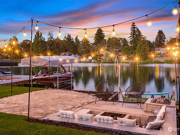 Make every day a lake day! 63 feet of waterfront on Lake Steilacoom’s private Northern cove with dock, jet ski ramp & boat lift! Views from all 3 levels will be sure to both impress & help you relax...Top to bottom remodel; complete with new kitchen featuring high-end appliances, pot filler, wine + bev fridge & custom reclaimed wood island. Patio off the dining room leads to your dream backyard, perfect for BBQs & entertaining. Primary en-suite includes soaking tub, water views & French doors to your private balcony. When you need to get away, the lower level is perfect for watching the game or taking a little siesta. Don't miss the brand new fire pit with seating for 6, RV parking, built-in speakers, dead end street & newer A/C! No HOA.