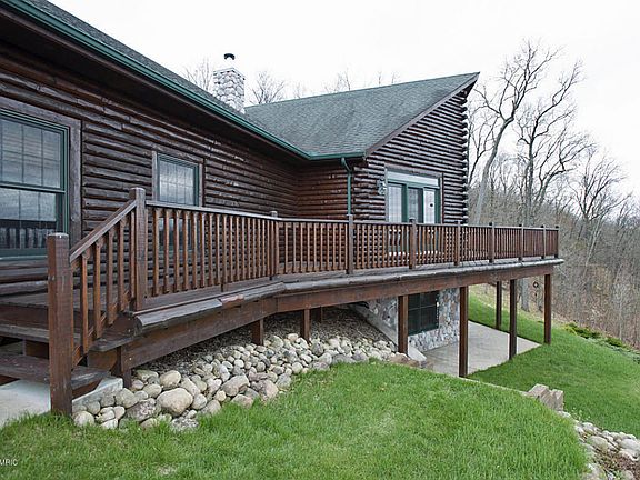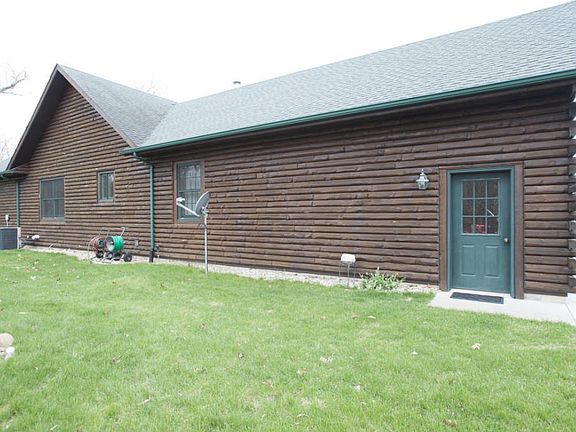 Beautiful hilltop log home. You can see views 15-20 miles away. A Custom built Pine Lake Log Home sitting on 8.25 acres. Open floor plan with a rustic kitchen with Corian countertops, ceramic floors, large living room with beautiful wood floors, log walls & tongue and groove ceiling and a Timberland Wood stove. 2 sets of 9Ft. French Doors open to a large deck. Huge Master suite with Private bath. Main floor laundry. The walkout level has family room, 2nd bedroom with the possibility of a 3rd i n the craft room. The large Second bedroom could be divided into two smaller rooms, full bath and plenty of storage. 2 Car attached, finished garage. Property also has a 30X40 Pole Barn.