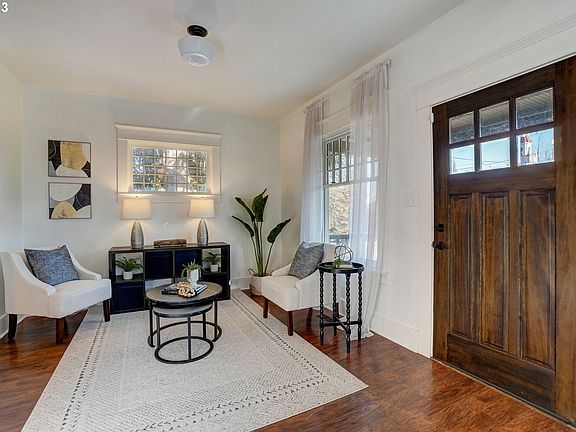 Modern and stylish with classic charm, this enchanting 4-bedroom farmhouse in the heart of St. Johns has everything you have beenlooking for! Living, dining, a bedroom and full bath on the main with a fully remodeled kitchen featuring on-trend quartz countertops, gas range, coffee bar and tons of storage. Main level bathroom w/ gleaming white tile, spacious walk-in shower and claw foot bathtub. Upstairs features three bedrooms including primary with built-in closet system, open loft/flex space and half bath. Finished basement includes laundry room, family room, gorgeous full bathroom, storage room w/furnace and tankless water heater, plus bonus room/ office/flex space. Excellent natural light and storage throughout. Outside, enjoy the covered back and front porches, back patio and fully fenced backyard. Convenient location near shopping, dining, parks, library and downtown St. Johns. [Home Energy Score = 3. HES Report at https://rpt.greenbuildingregistry.com/hes/OR10223914]