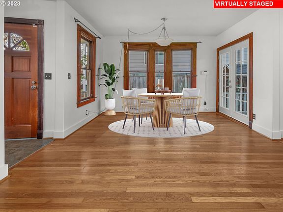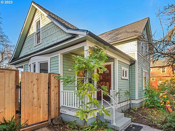 Nestled in the heart of Portland's vibrant St. Johns neighborhood, this charming 2 bed, 1.5 bath farmhouse is a haven of comfort and style. Boasting a thoughtfully designed interior, the residence features an open-concept layout with a wood-burning stove & hardwood floors, creating an inviting atmosphere for both relaxation and entertainment. The modern kitchen is a chef's delight with sleek, stainless steel appliances and ample counter space. Sunlight streams through large windows, illuminating the cozy living spaces and enhancing the warm ambiance throughout. Enjoy the tranquility of the 2 spacious bedrooms upstairs with a skylit bathroom. Laundry up! Step outside to discover a private backyard oasis, perfect for summer gatherings and al fresco dining on the deck. Long driveway for ample off-street/RV parking. Basement w/storage space. Conveniently located near parks, schools and eclectic shops & dining, this home offers the ideal blend of urban living and suburban tranquility. With its impeccable design and prime location, it presents a unique opportunity to embrace the best of Portland living. Your dream home awaits in this sought-after community. [Home Energy Score = 4. HES Report at https://rpt.greenbuildingregistry.com/hes/OR10057511]