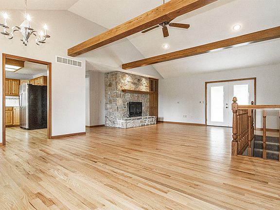 Back on the market with many updates! New hard wood flooring, carpet and updated bathrooms. This 4400' rancher is within a mile to walking trails, golf course and Milford Lake. When you enter this home you will be drawn to the limestone fireplace, beams and new hard wood floors. The eat in kitchen is well designed with great prep space, quartz counter tops, stainless appliances, built in hutch and large bay window. The master suite is located on the opposite side of the other bedrooms and the master bath has a large vanity with two sinks, onyx shower, large jetted tub, walk in closet and an office, nursery or sitting area on the other side. The walk out basement is great for gathering a crowd around the 2nd fireplace, play a game of pool and belly up to the bar with a full kitchen. Don't be fooled by the two car garage because it is over-sized and you can easily park 4 cars. For more information or to schedule a showing, call Heidi Morgan with NextHome Unlimited.