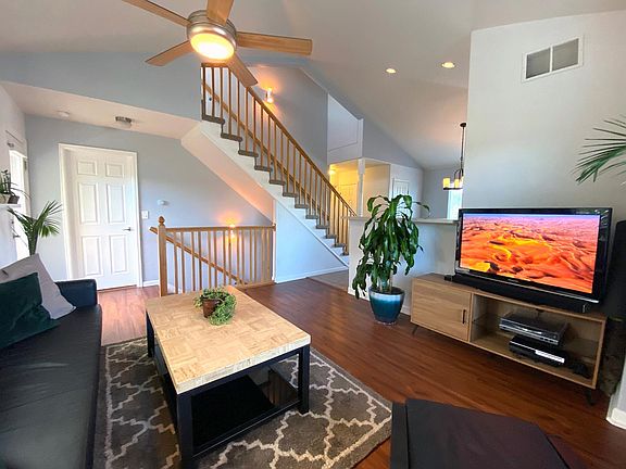 Bright, airy end-unit townhome in Four Acre Lakes features two en-suite bedrooms with full baths and walk-in closets and is perfect for roommates or small families. Living area features vaulted ceilings, large picture windows and vinyl plank flooring. The eat-in kitchen has well-kept stainless steel appliances: french-door fridge, gas range with griddle, microwave and dishwasher. In-unit laundry room with GE front loading washer and dryer makes laundry a breeze, has extra storage space and is next to a coat closet and half-bathroom with natural light. Main-level bedroom is perfect for guests w/ a large walk-in closet, private full bathroom or as additional space for a work-from-home office. Relax in the upper-level master suite with impressive mountain and lake views, a walk-in closet, en-suite bathroom, and bonus room w/ built-in shelving that makes a great study, nursery, additional storage or closet space. The balcony is a great place for morning coffee and for listening to the birds that have made their nests around Four Acre Lake, which has a wide walking path for evening strolls. The oversized 2-car garage works with vehicles that need extra roof clearance, and has enough space for two vehicles, bikes, skis, camping gear and to set up a workbench and exercise area. If you need more gathering space, there's a community gazebo behind the house to host your outdoor gatherings. Quiet HOA community that takes care of all landscaping and snow removal needs, and has some amazing neighbors. Within about 1-mile you have: quick access to I-70, two RTD light rails stations (Arvada Ridge and Olde Town), Olde Town Arvada, Clear Creek walking/biking trail, plenty of stores nearby (Natural Grocers, Target, Costco, Yak & Yeti, coffee shops, etc). Water and trash included. Renter responsible for electric, gas, internet, cable, etc. No smoking. Possibility to keep furnished at additional monthly rate. Longer lease option available.