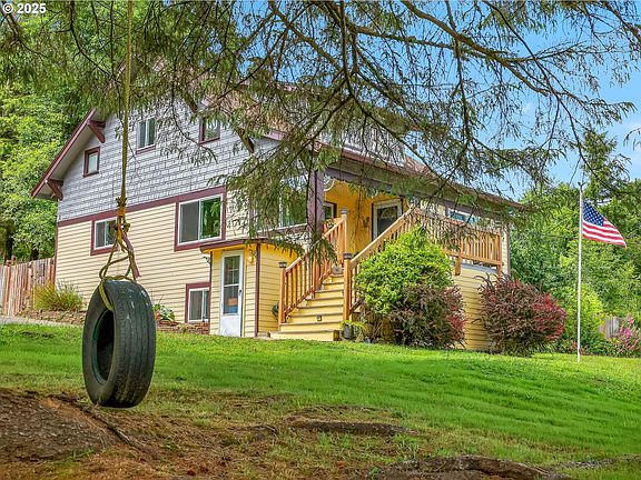 Discover your dream home on 1.46 acres just outside of Astoria, Oregon. This charming 4-bedroom, 3-bathroom residence offers a perfect blend of rustic elegance and modern comfort. Inside, you'll find a beautifully crafted kitchen featuring raw-edge wood countertops, a classic white farm sink, and stainless steel appliances, creating an inviting space for cooking and entertaining. The home boasts a spacious layout with four bedrooms, providing ample room for family and guests. Outdoors, enjoy relaxing on the covered front porch or hosting gatherings on the back deck. The property includes half an acre of fenced forest, offering privacy, tranquility, and a private outdoor retreat. Apple, pear, plum, and cherry trees included! Additional features include a detached garage, perfect for storage or a workshop, and a total of 2,615 square feet of living space. Whether you're seeking a peaceful retreat or a spacious family home, this property offers it all in a beautiful Oregon setting.