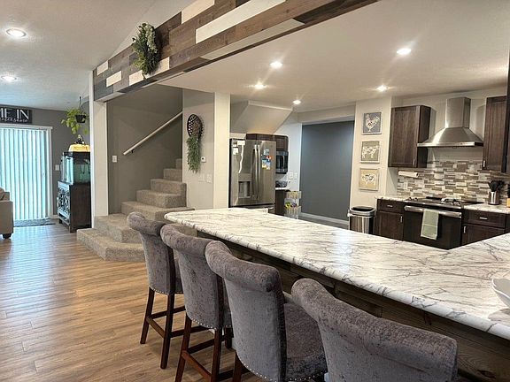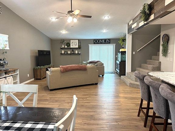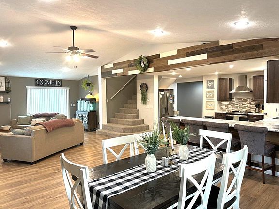 Don’t let this perfect home pass you by! As you enter you will fall in love with this updated and very spacious open floor plan! The kitchen is amazing with an extreme breakfast nook, corner pantry and extra set of cabinets near fridge that is currently a unique snack station. The windows bring in plenty of natural light yet do not take away from the abundant wall space and the sliding door off the living room offers convenient access to the back patio and yard. You will find the primary bedroom off the kitchen with an ensuite ¾ bath and walk in closet. The laundry room is found down the hall next to the garage entrance and includes a ½ bath. Up the winding stairway is where you will find the 3 additional bedrooms and a full bath. Don’t forget about the partial basement which is the perfect place for storage or other potential uses and is already plumbed for additional bath. The attached 24x23 garage with alley access is heated and sheet rocked. See the available 3D tour of home for additional photo coverage.