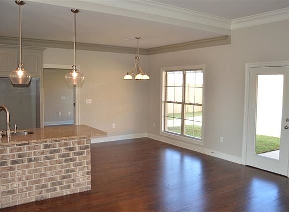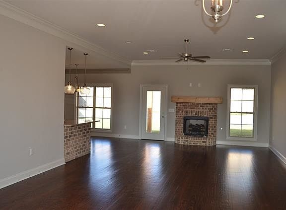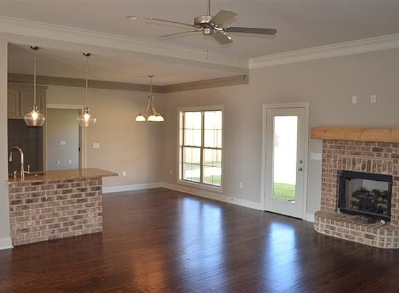 BEAUTIFUL NEW CONSTRUCTION 3 bedroom 2 bath with BEAUTIFUL heart of pine wood floors, carpet in bedrooms, and ceramic tile in baths, formal dining, huge living with gas fireplace, great kitchen with granite countertops and lots of counter and cabinet space, LARGE pantry, master is a good size with a huge walk in closet.. Master bath is very pretty with double vanity, jetted tub and sep stand up shower.. Secondary bedrooms are all large with good closet space.. Very nice laundry area than passes through to the master bedroom.. Nice totally fenced backyard.. Covered porch that is wired for a tv.. Granite counters are throughout this home..