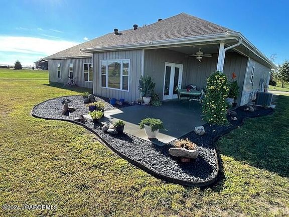 Welcome to your dream home! Built in 2020, this modern gem features 3 spacious bedrooms and 2 beautifully appointed bathrooms, offering 1800 square feet of comfortable living space, oversized 2-car garage with storage and a very spacious attic for your storage needs. Sleek flooring throughout and coffered ceilings are of great appeal! The stylish steel siding with rock veneer accents adds a touch of elegance and durability to the exterior. A generous 2-car garage provides ample space for vehicles and storage. Situated on the edge of town, you'll enjoy the perfect blend of peaceful, scenic surroundings and convenient access to local amenities. Don't miss out on this exceptions property!