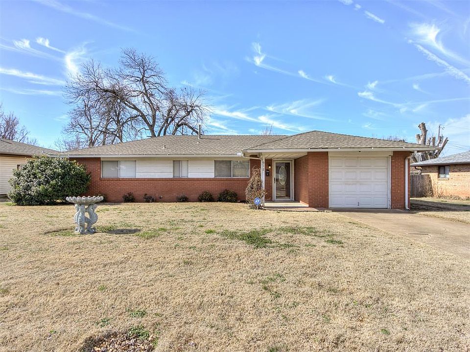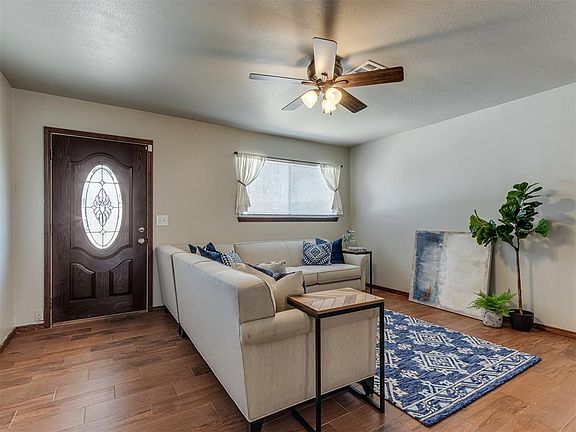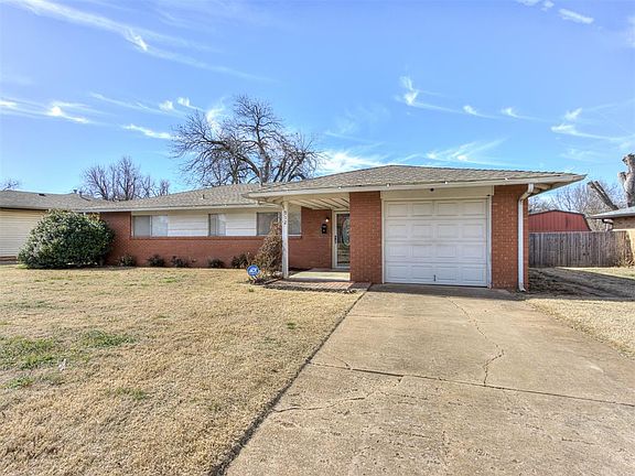 Welcome home! This charming, 3-bedroom, 1-bathroom Midwest City home exudes vintage charm, with original, parquet floors in each bedroom. The kitchen features stainless steel appliances. The original wood cabinets provide a warm and inviting atmosphere. Throughout the home, you'll find ceiling fans, ensuring comfort and airflow in every room. Outside, a covered back patio awaits in the spacious backyard, providing the perfect setting for outdoor dining, entertaining, or simply relaxing with a cup of coffee in the morning sun. The expansive yard offers endless possibilities for gardening, play areas for children or pets, or even the addition of a cozy fire pit for evening gatherings. Conveniently located just 8 minutes from I-40, 11 minutes from Tinker AFB, and 15 minutes from downtown OKC, this home offers easy access to amenities and attractions. Don't miss the opportunity to make this charming Midwest City residence your own! Tour today and envision the possibilities of calling this place home!