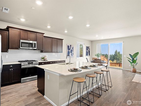 Beautiful rambler with breathtaking views of Washington's best; Seattle, mountains and the sound! Luxury meets comfort in this newer home, with vaulted ceilings, natural light and gleaming floors greeting you at the door. Open living room, dining room and kitchen make entertaining a breeze. Spacious kitchen invites guests with its large island with natural stone countertops, chic cabinetry and SS appliances. 3 bedrooms, including the luxurious Primary Suite with its own attached bath. Spoil yourself with the dual vanity, walk in shower, and soaking tub. Home is perfectly situated on a premium lot; backing up to the greenbelt for added privacy. Easy drive to the highway, area bases and the Shipyard.