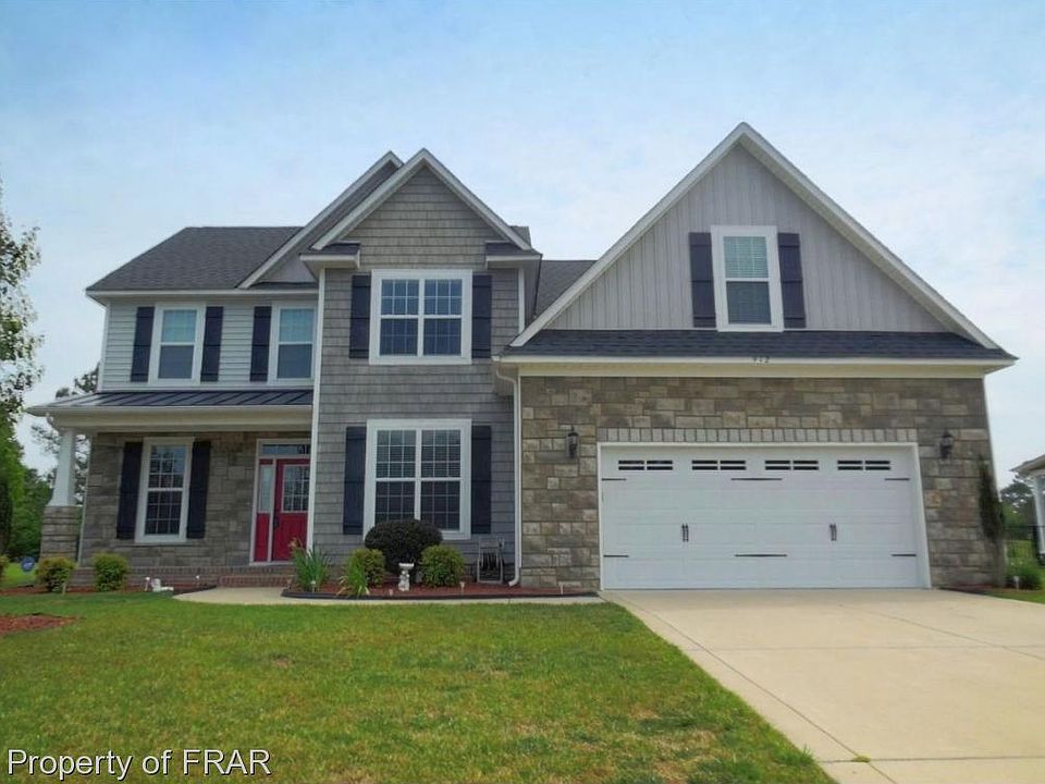 Elementary school is 2018 National Blue Ribbon School!! GOLF COURSE LOTâNO HOA! Immaculate, magazine-shoot ready 2-story house! Only 20 min. to Ft Bragg via I-295! 4BR/3.5 bath plus bonus! Open kitchen w/ granite & SS apps. Master suite down w/large bath &WIC. Beautiful dining room w/coffered ceiling. Large family rooms on both levels! 3 spacious BRS up plus 2 full baths. Bonus room. Large flat yard w/irrig. & covered patio. Dbl garage. Lovely Golf course community w/pool access.