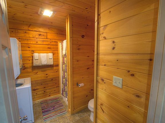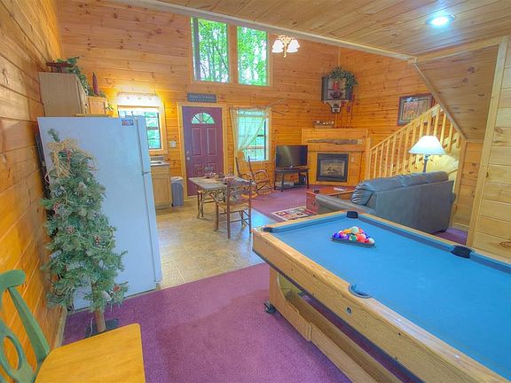 This secluded "couples cabin" is great for Honeymooners and romantic Anniversary getaways. Enjoy true log cabin vacations only minutes away from the Glades Rd Arts and Crafts Community (the largest of its kind in the country. Also located near the new Gatlinburg Sports center AND the Great Smoky Mountain National Park. You can own a piece of the Smokies for less than the cost of a hotel or time share, AND profit from renting it out when you are not using it yourself. The master suite features a king bed and whirlpool tub upstairs and another full bathroom downstairs. The game table downstairs is a dual game (pool table and air hockey) and outside on the back deck is a very private hot tub for two. Call us today to see this secluded log cabin.