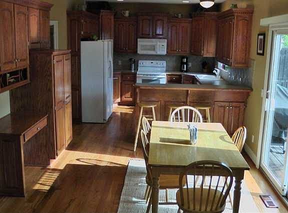 Lawrence Kansas Real Estate, one of the highest hilltop homes for sale, gorgeous hardwood floors, main level master, fireplace, new interior and exterior paint, easy I-70 and K-10 bypass access, fireplace, jetted tub, huge wood deck on two levels (stained Oct 200), cedar fenced backyard, play system stays, walkout basement