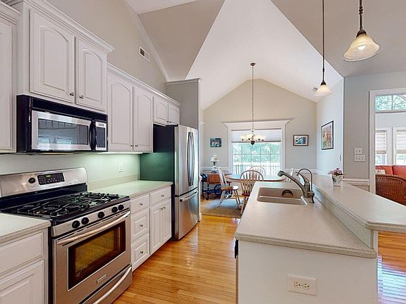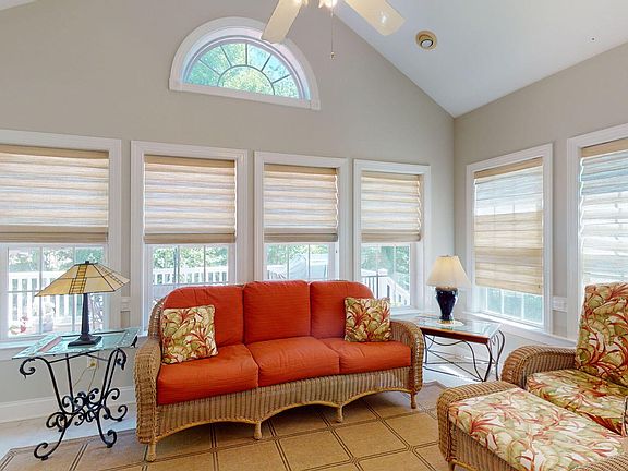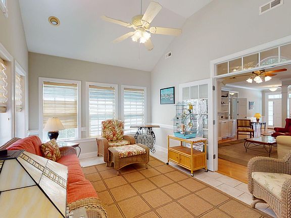 CUSTOM BUILD ONE OWNER IN GATED WATERFRONT COMMUNITY.......Original owners have lovingly cared for this beautiful custom build. Unique opportunity to purchase home and separate lot in back yard to maintain ultimate privacy! Cul-de-sac location near golf club, the covered rocking chair front porch welcomes you into this special property. Dining room to your left with ceiling detail, moldings, huge window loads of natural light. Gleaming hardwood flooring, extensive molding details, built ins, transom window panes, propane fireplace in living room with french doors into Carolina Room that you will live in, leads to massive composite deck and private back yard. LOT BEHIND ALSO FOR SALE, INQUIRE ABOUT THIS! 1012 Barkentine Dr. Two bedrooms and full bath on opposite side of entry for guest privacy. The kitchen is special with solid surface counters, beautiful white cabinetry, propane gas stove, and island with sink and seating option. There's a pantry closet also! The primary owners suite has view to back yard, trey ceiling, large closet and bathroom with dual vanities, water closet, large soaking tub and walk in shower. The finished room over garage offers a 1/2 bath, craft/flex space and extra space for guests with storage and a large window. You will live in the 4 season Carolina room with tile flooring, abundant windows with beautiful shades, vaulted ceiling that overlooks your private backyard that has a .29 acre lot immediately in rear yard that can be purchased as well to ensure that privacy remains! Owners willing to discount that lot when purchased with the home. Ask for details. This home comes with all appliances as well. A huge driveway and two car garage and a laundry area complete this beautiful property. Truly move in turnkey ready! HVAC REPLACED OCT 2022. Kinetico Water treatment and reverse osmosis under sink. There's not many special properties like this, make your appointment today before it's someone else's dream! Removable fence conveys.