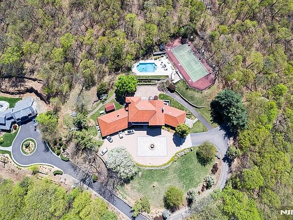 Set high atop 3.2 acres of manicured grounds, this magnificent villa offers resort style living with stunning mountain views and unparalleled tranquility and privacy. This exceptional property, rarely found in the Northeast, provides the feeling of a dream vacation destination in Central America or California, yet is only 30 minutes from NYC. Your private road brings brings you to grounds that are a true private oasis, with a heated pool, tennis court, and a fully outfitted outdoor kitchen. Multiple balconies and terraces create seamless indoor-outdoor living, where the breathtaking views transform with the seasons. The property offers 7,700 square feet of exquisite living space with an additional 3000 square feet of unfinished space to expand further. With a full interior renovation in 2018, every inch of this extraordinary home reflects master craftsmanship, sophisticated style, and effortless elegance. Designed for grand living and effortless entertaining, the estate features 8 bedrooms and 5.5 baths, a 3-stop elevator, whole-house generator, 5-zone central air, and 7-zone heating. The expansive chef's kitchen opens into a sun-drenched breakfast room, while the primary suite offers a private balcony with amazing views. Enjoy luxuries such as a cedar closet, sauna, steam bath, wet bar, and changing rooms. In sought-after Franklin Lakes, 912 Cherokee Lane promises an unparalleled lifestyle of distinction, privacy, and beauty. Moments from everything, yet a world away.