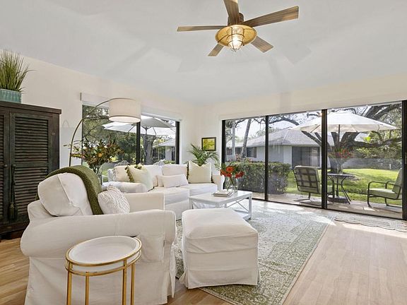 A PGA Classic Cottage with option for PGA Racquet Membership privileges. The living room has 180-degree views of the water and gardens. Turnkey with a Washer and Dryer. King bed in primary and a queen bed in guest room. Smart TVs and ceiling fans in every room. Enjoy swimming in the heated Cottage pool. Walk to the PGA Resort/Spa and restaurants. Ride your bike or walk endless paths surrounded by a tropical paradise. The Palm Beach Gardens Mall with over 150 specialty shops and a cornucopia of delectable restaurants are right down the street. Minutes to the Jupiter, Juno and Singer Island beaches. 20 min to PBI airport. Electric, WIFI, basic cable and water included.