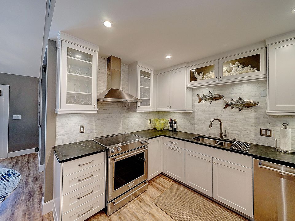 CURRENTLY UNDER CONTRACT, SELLER ACCEPTING BACKUP OFFERS Just like new, move in ready, completely renovated in Bay Point! The seller spared no expense while updating this Bay Point Home with gorgeous tile, custom cabinets, flooring, granite, barn doors and shiplap. 4 bedrooms, 4 full baths and a great open layout for easy living all on one floor. Hang out in the backyard by the Saltwater pool! The pool and screen enclosure were added in 2017 so they too are almost brand new! A covered porch, gorgeous backyard, circular drive for plenty of parking, incredible fireplace and a smart system for your lights and electronics are just a few additional features. Bay Point is a gated community close to all Panama City Beach has to offer. Call today for your private showing. No hurricane damage here