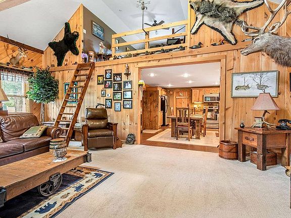 Make this your NextHome! Old schoolhouse was transformed into charming, rustic lodge-like home with 1 bedroom and large full bathroom on 1st floor and 2nd bedroom in loft, updated eat-in kitchen opens into large living room with cathedral ceiling, custom wood barn doors, clean dry basement, 2 car garage, workshop and many outbuildings make the opportunities here endless, all on 1.58 acres of land. Peaceful country living, Mexico School district. New septic system being installed on 7/27/21