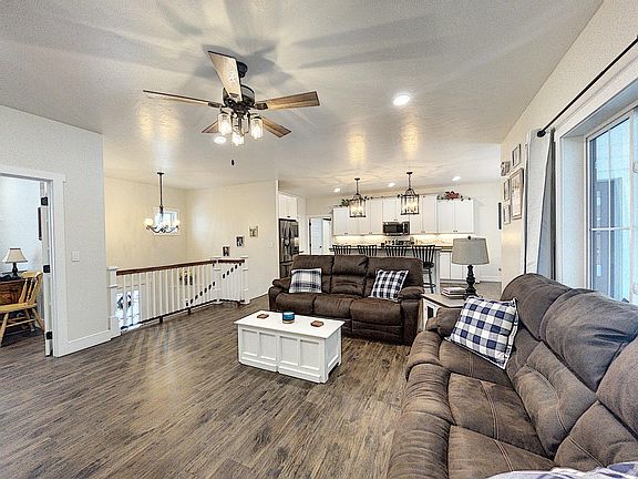 Better than BRAND NEW! This home has all the yard including fencing, underground sprinklers and landscaping completed! This home is ready to move into. The grand entrance has beautiful custom finishes with built in arch shelving. The floor plan of this home is such a great use of space! The main level has wonderful natural lighting...the master has a barn door leading to the walk in closet and 3/4 /bath. There are 2 other bedroom as well as an office with French doors, that could function as another bedroom. Three is a full bath located in between the 2 bedrooms. All the rooms are spacious and could accommodate large furniture. The lower level has a Jack and Jill bath in between 2 good sized bedrooms. There is also a large family room.